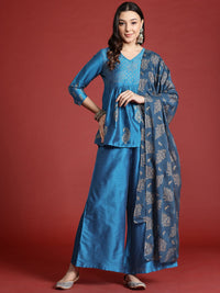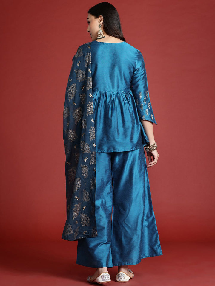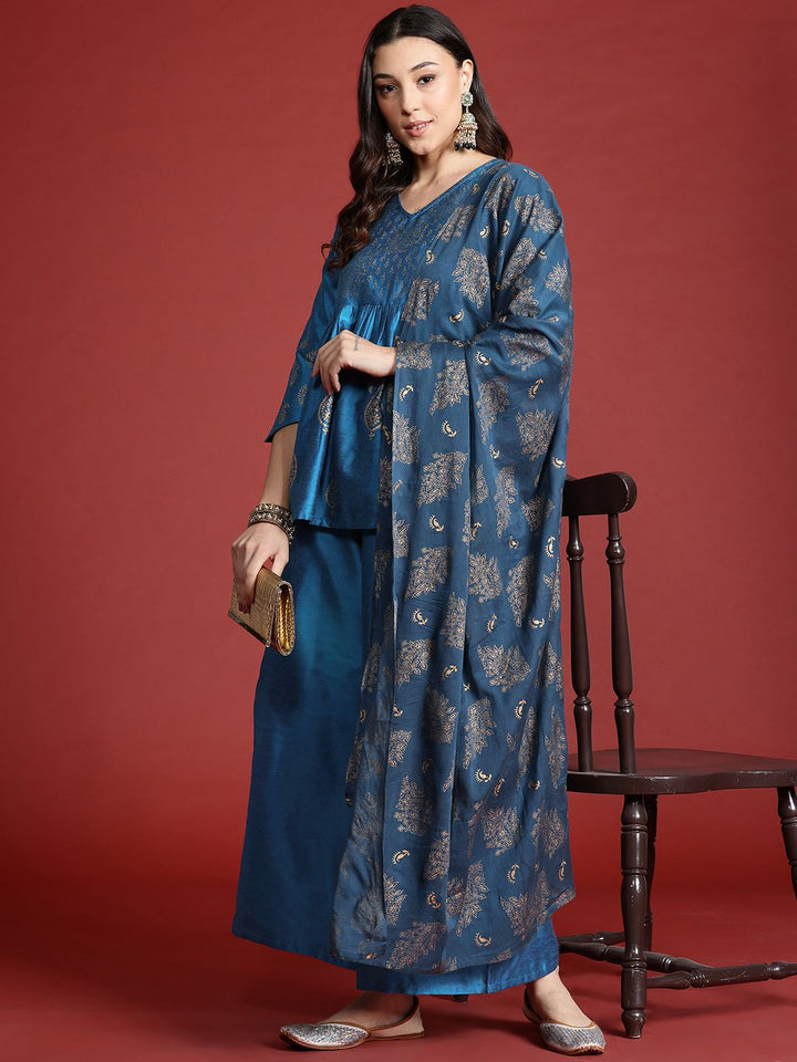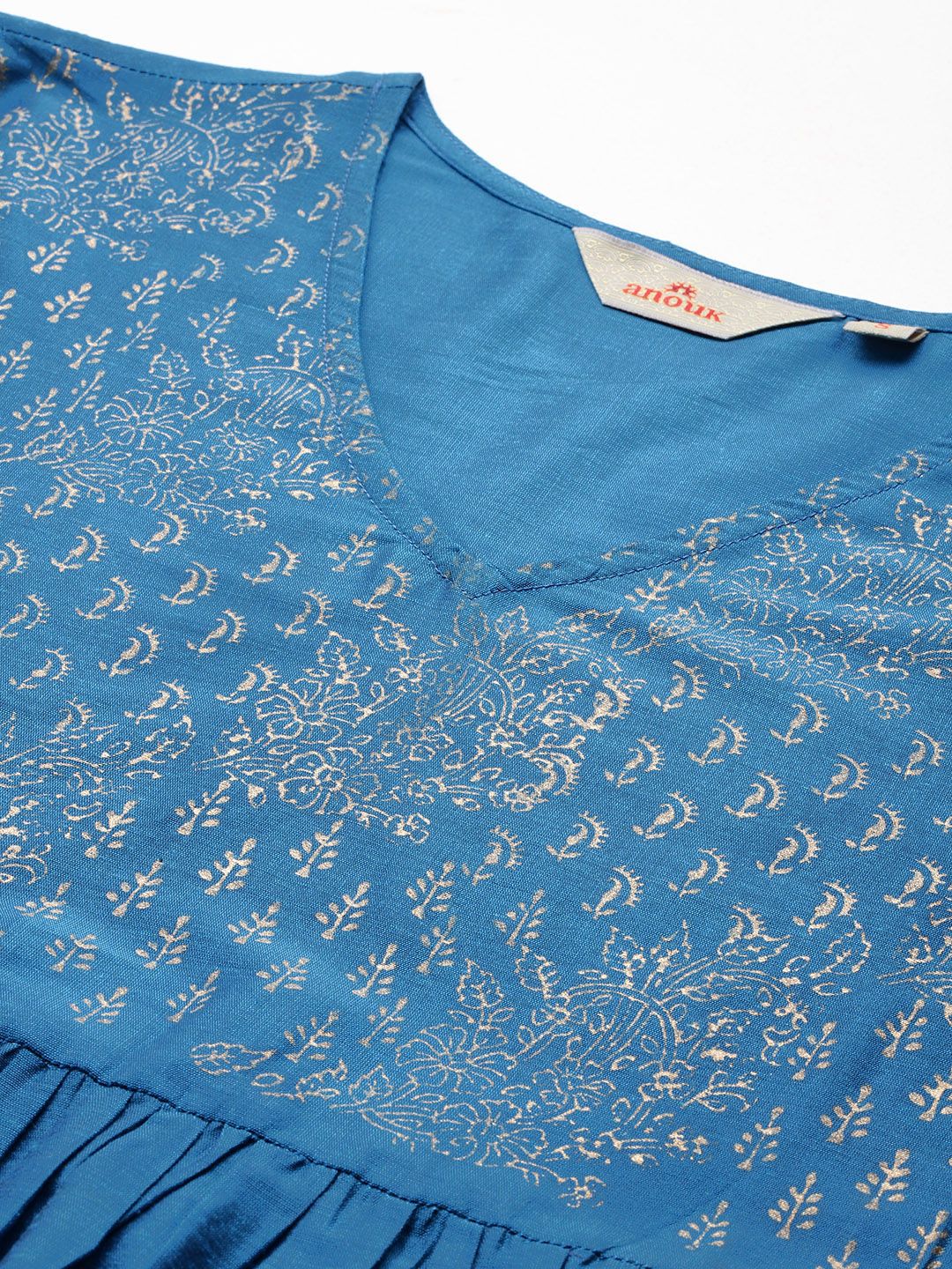 Anouk Tyohar Collection Paisley Print Pleated Kurti with Palazzos & Dupatta