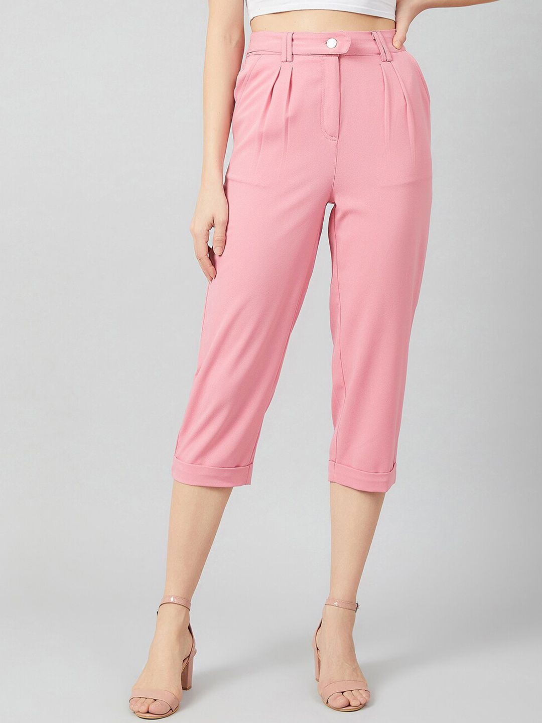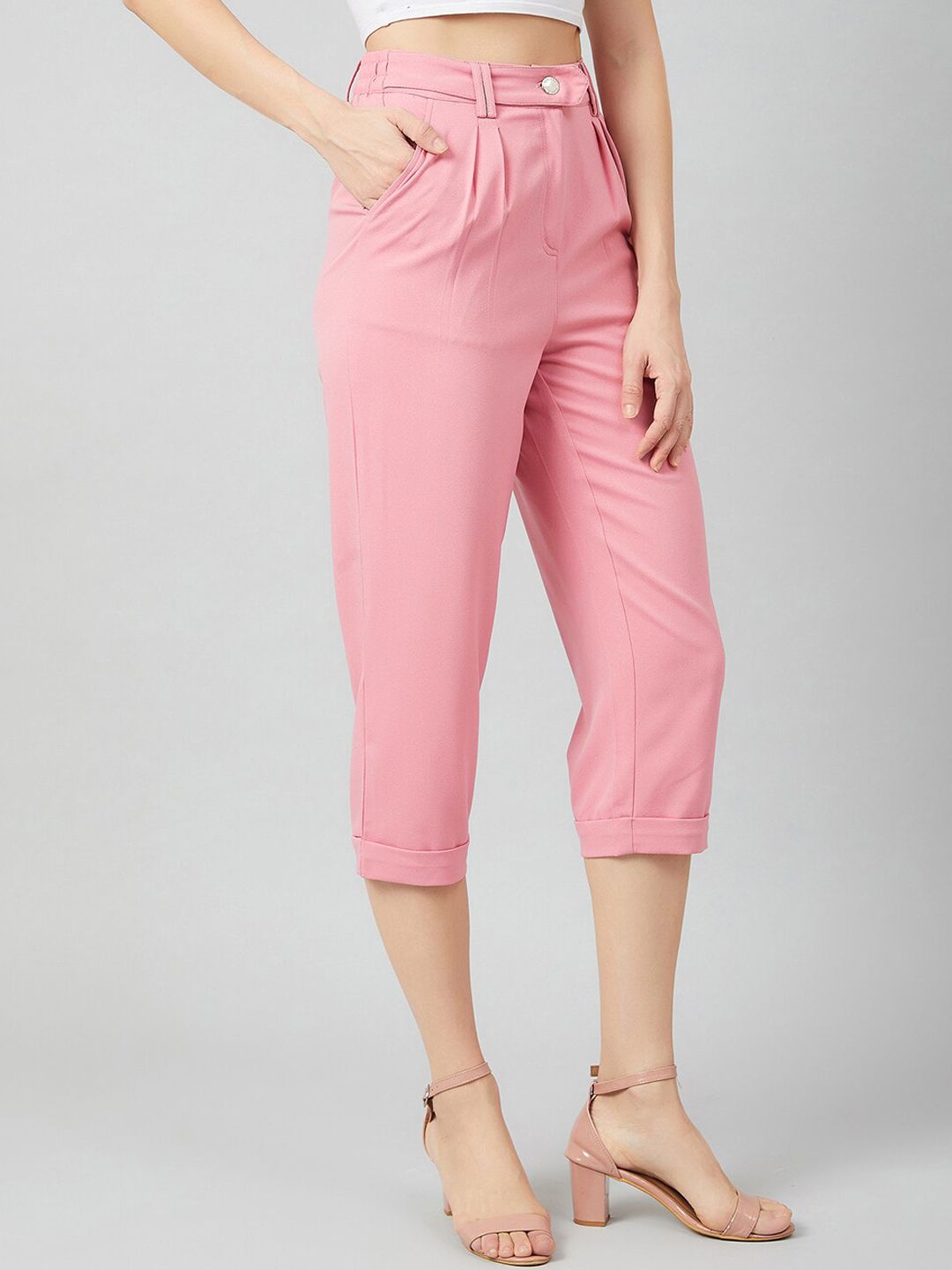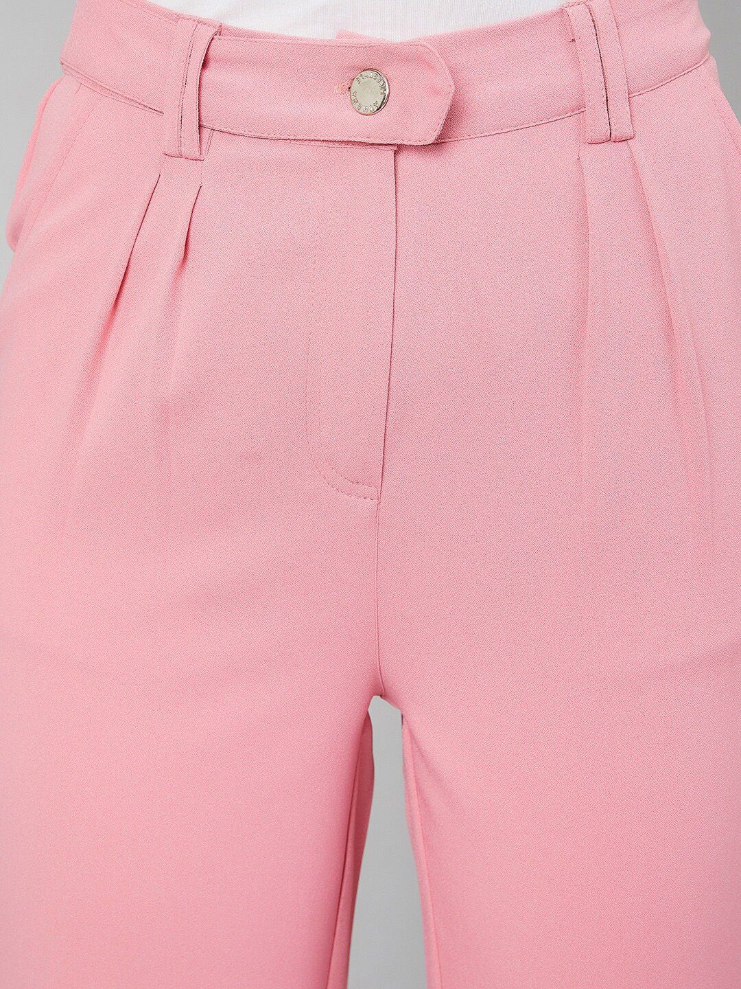 Pink solid trousers and button closure