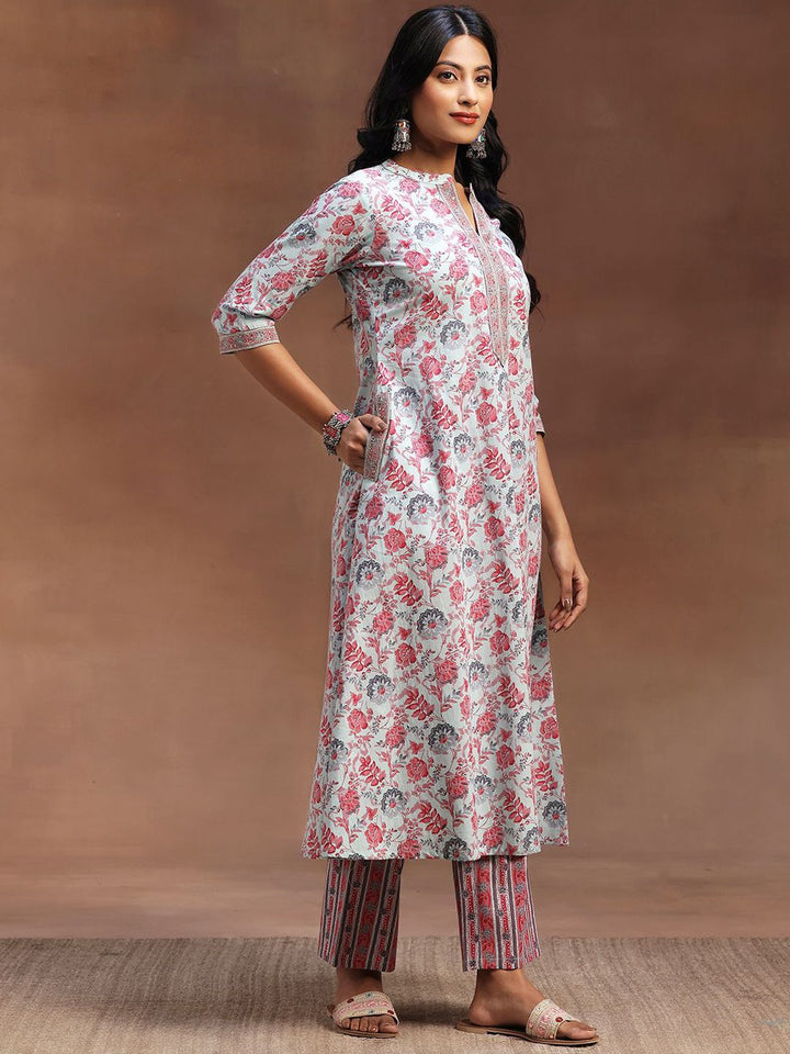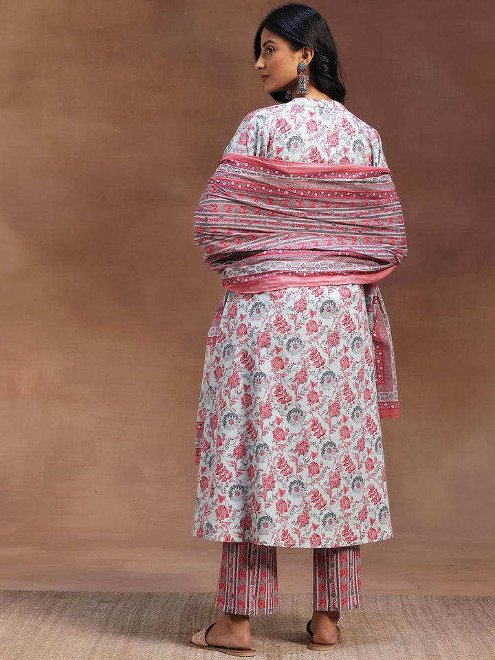 Libas Floral Printed Pure Cotton Kurta with Trousers & Dupatta