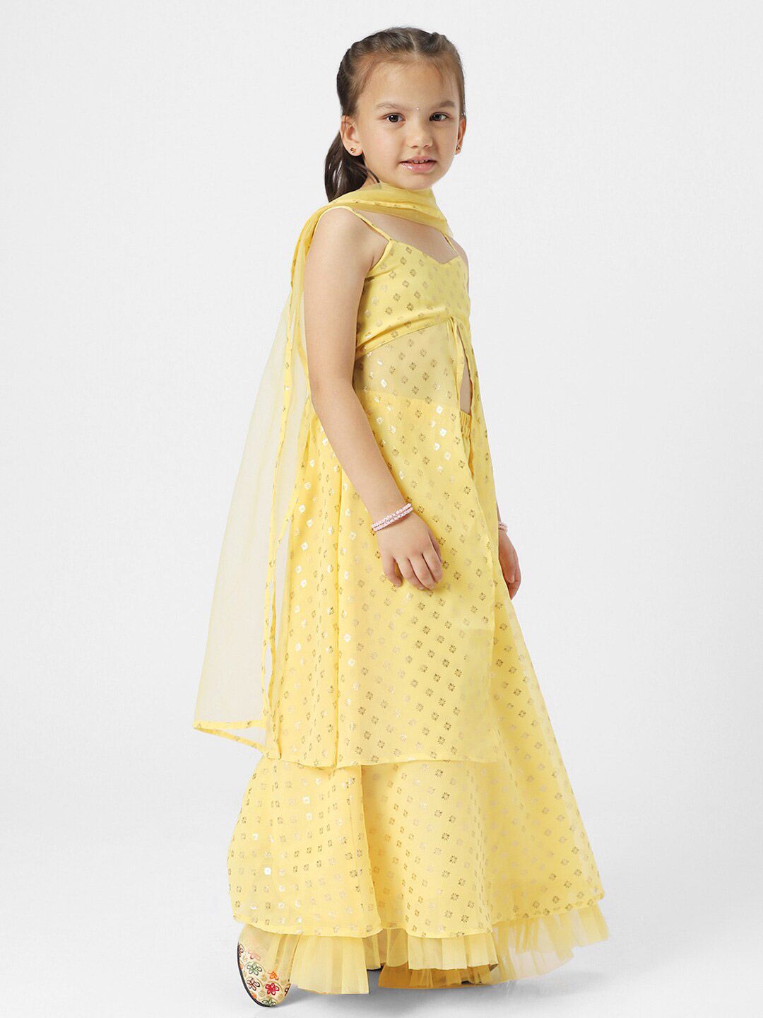 Nauti Nati Girls Printed Foil Print Sleeveless Ready to Wear Lehenga & Blouse With Dupatta