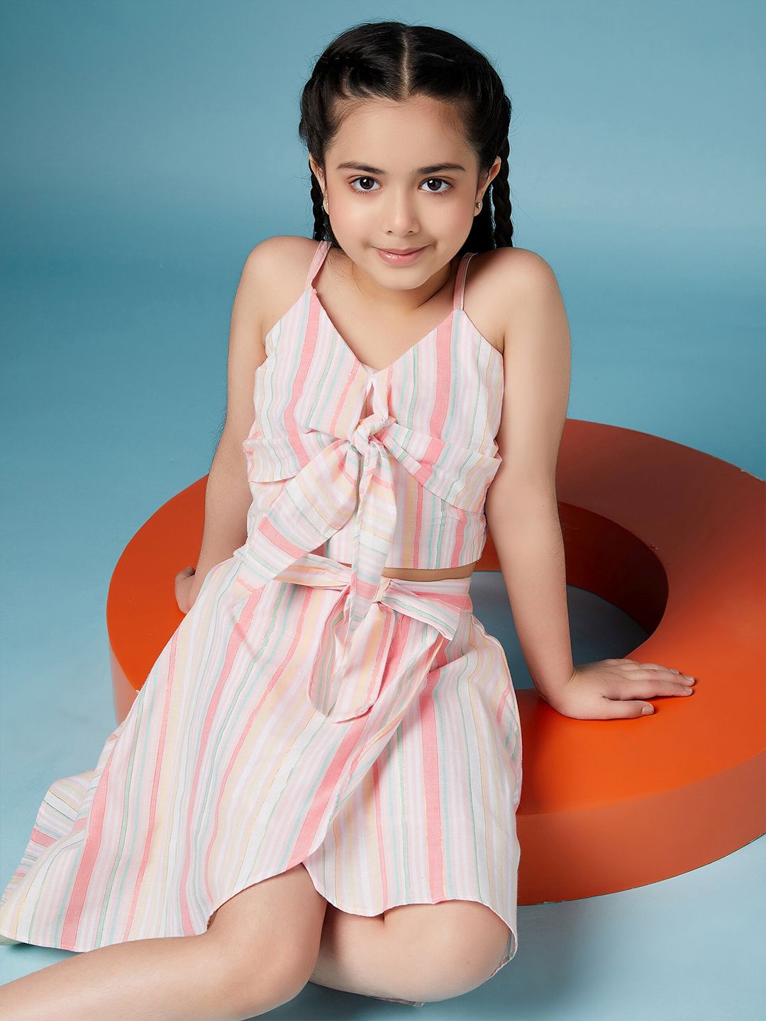 pspeaches Girls Striped Pure Cotton Clothing Set