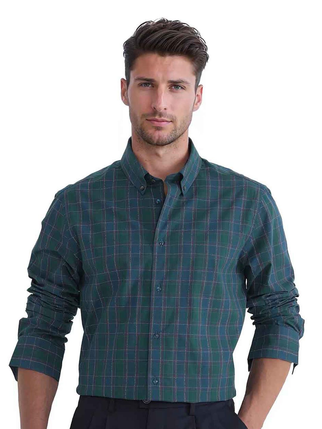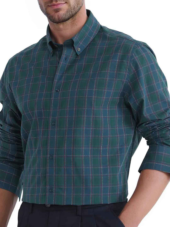 RARE RABBIT Men Comfort Button-Down Collar Checked Cotton Casual Shirt