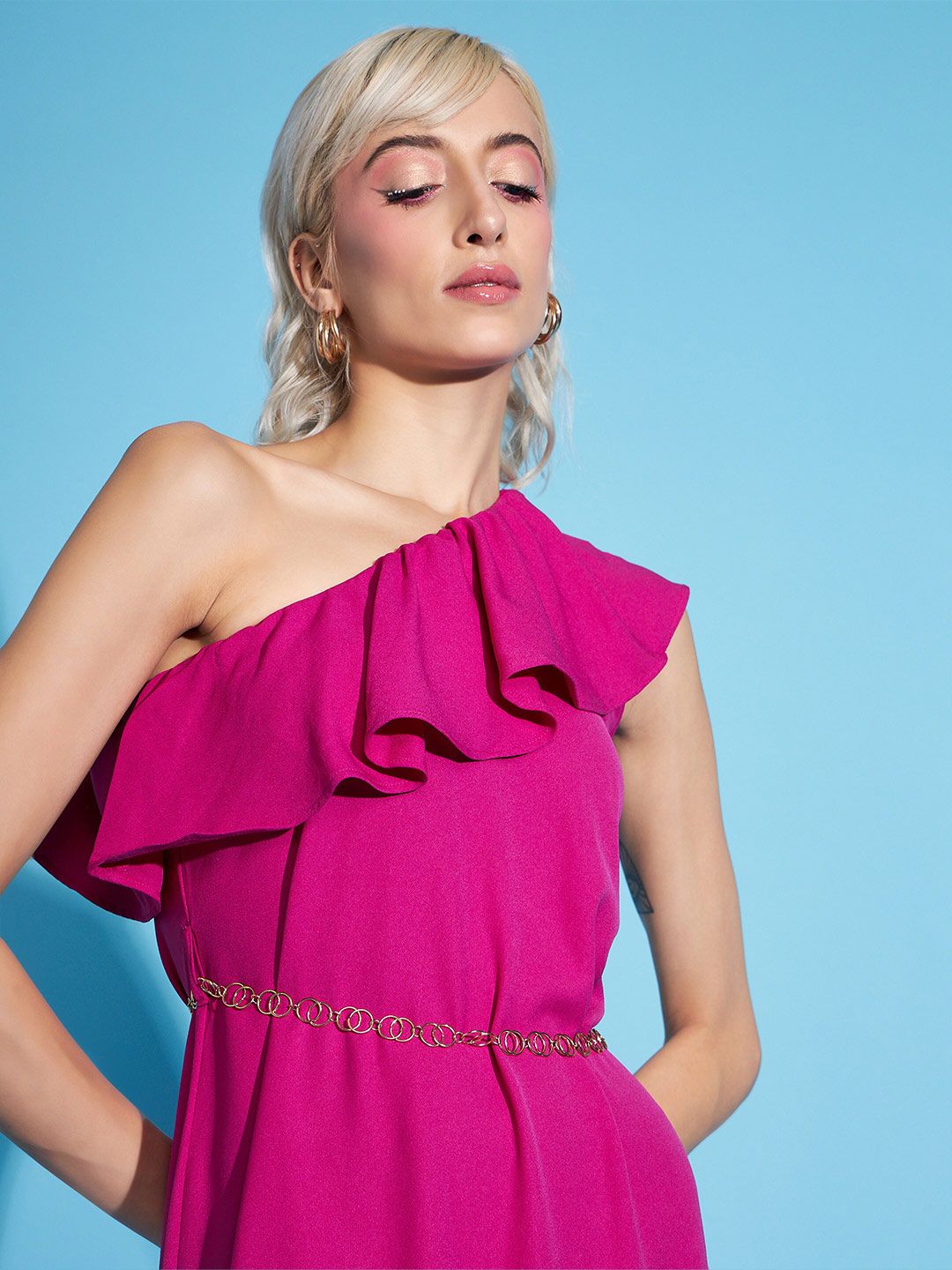 SASSAFRAS Fuchsia A-Line Mini Dress
