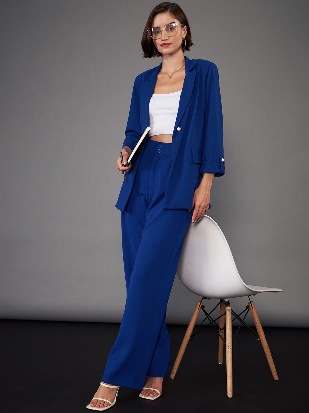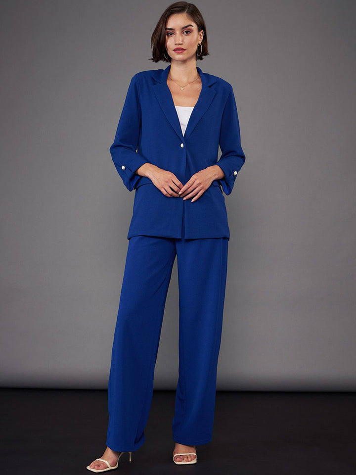 SASSAFRAS worklyf Royal Blue Front Button Blazer With Trousers