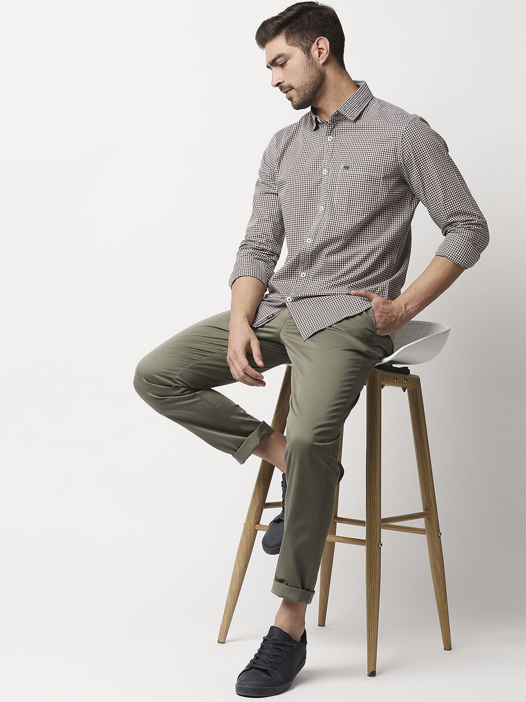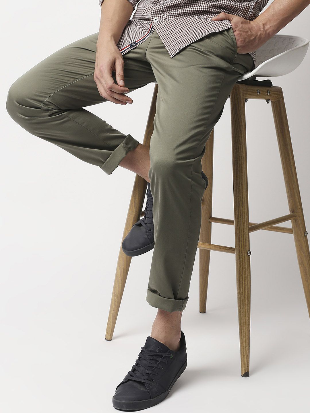 Thomas Scott Men Olive Green New Millennium Fit Easy Wash Trousers