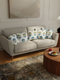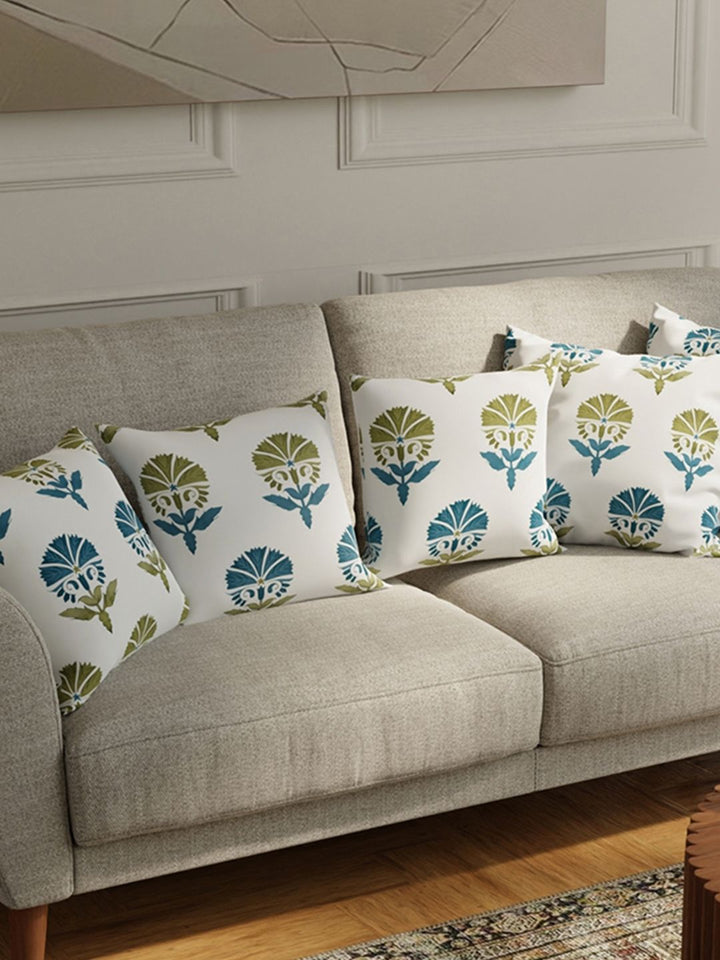 URBAN SPACE White & Blue 5 Pieces Floral Printed Cotton Square Cushion Covers