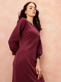 all about you Notched Round Neck Cuffed Sleeves Sheath Dress with Back Sllit
