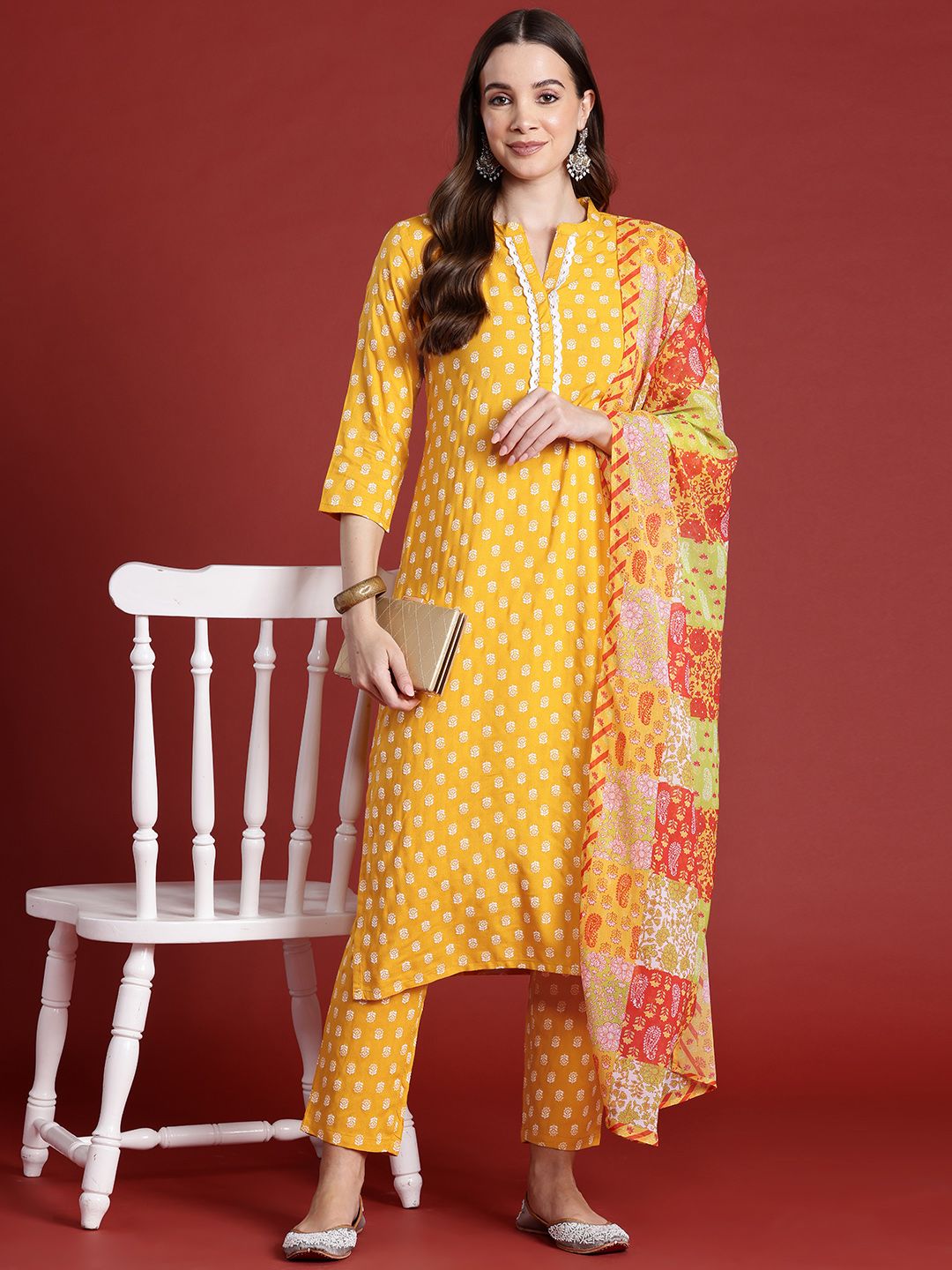 Anouk Ethnic Motifs Print Kurta with Trousers & Dupatta