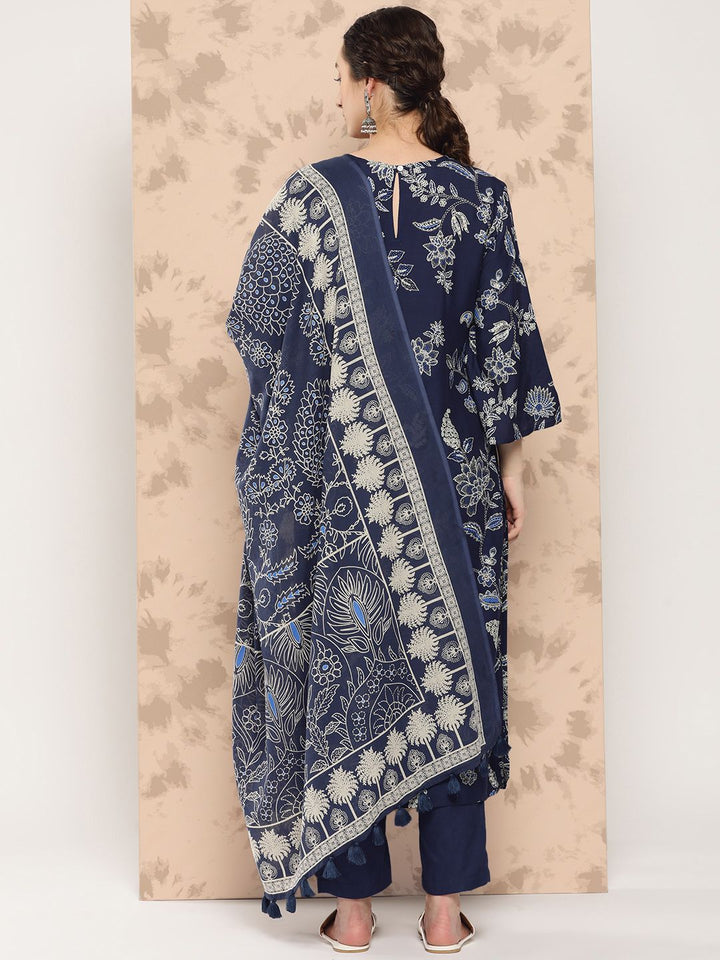 Navy blue printed Kurta with Trousers with dupatta