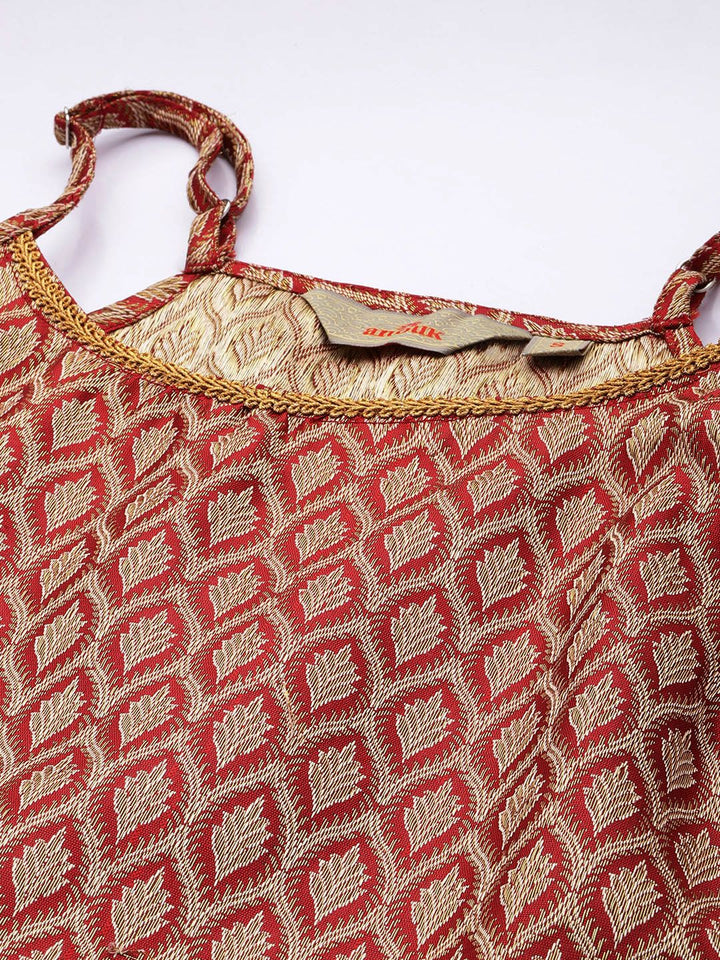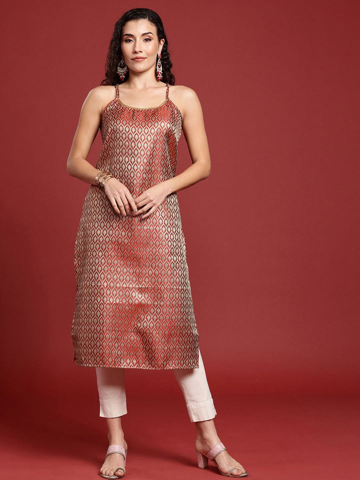 Anouk Ethnic Motifs Woven Design Straight Sleeveless Kurta
