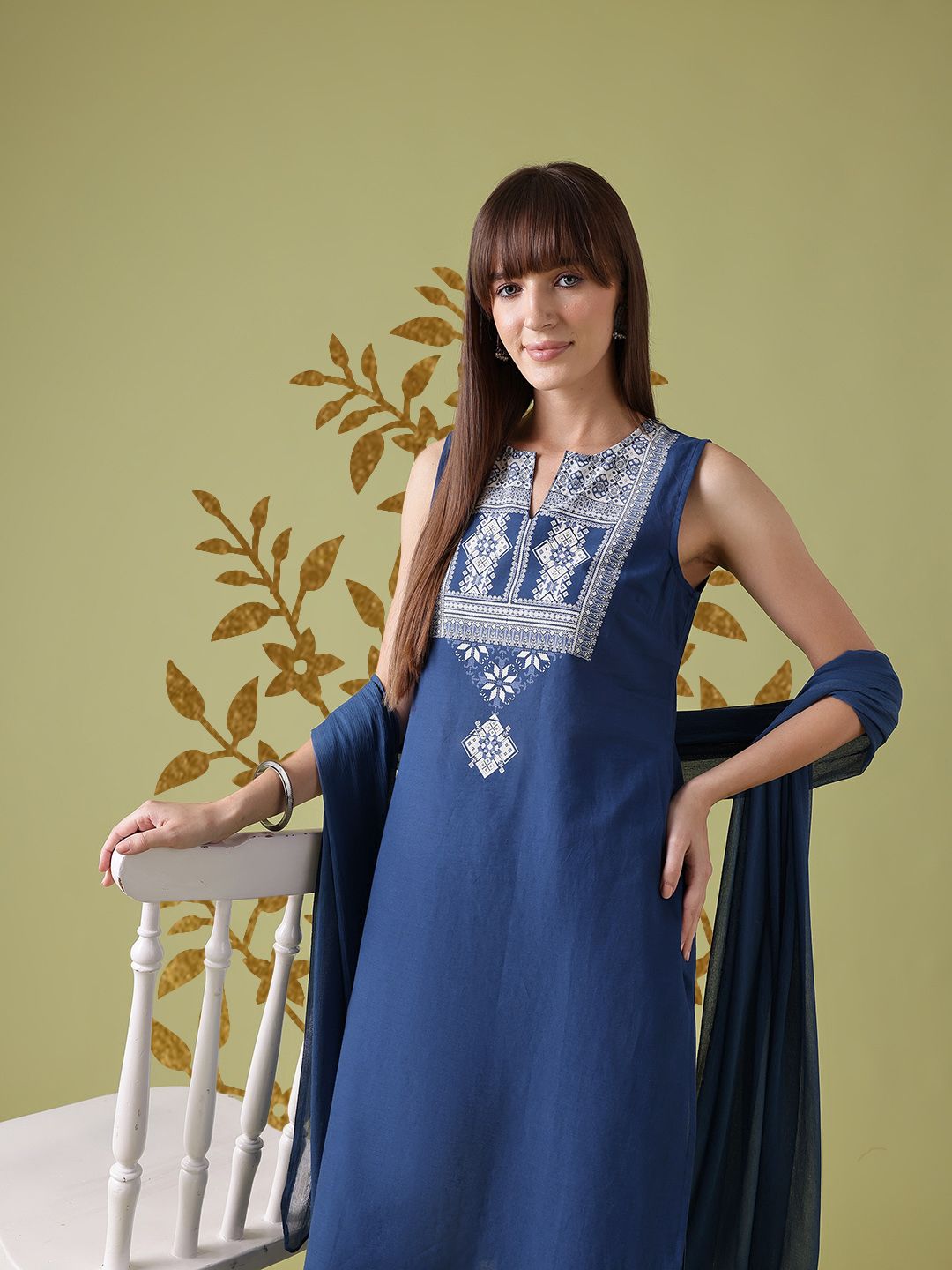 Anouk Ethnic Motifs Yoke Design Pure Cotton Kurta with Trousers & Dupatta