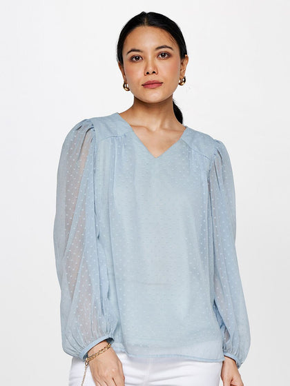AND Shirt Collar Long Cuffed Sleeves Self design Longline Top