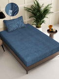 KLOTTHE Blue Woollen 300TC Fitted Single Bedsheet With Pillow Cover