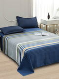 Story@home Blue & White Striped 240 TC Satin Finish Queen Bedsheet Set