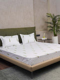 URBAN SPACE Pinewood White & Green Pure Cotton 200 TC Queen Bedsheet with 2 Pillow Covers
