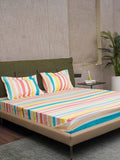 URBAN SPACE Serene White & Pink Pure Cotton 200 TC Single Bedsheet with 1 Pillow Cover