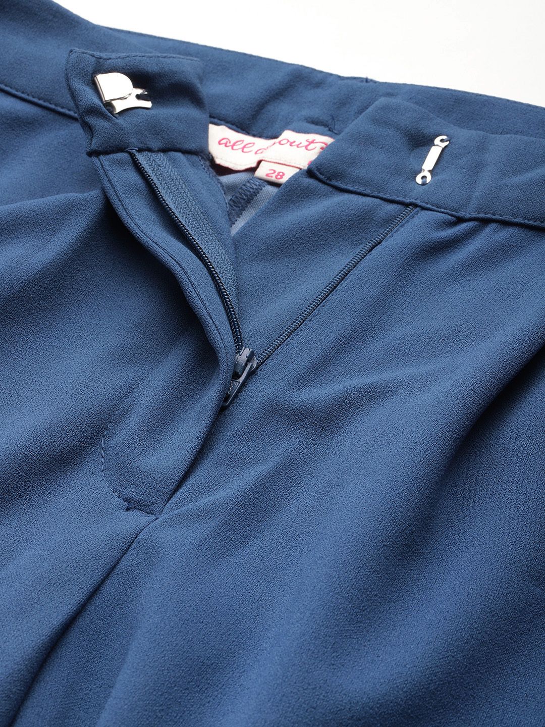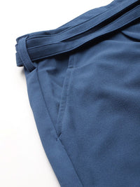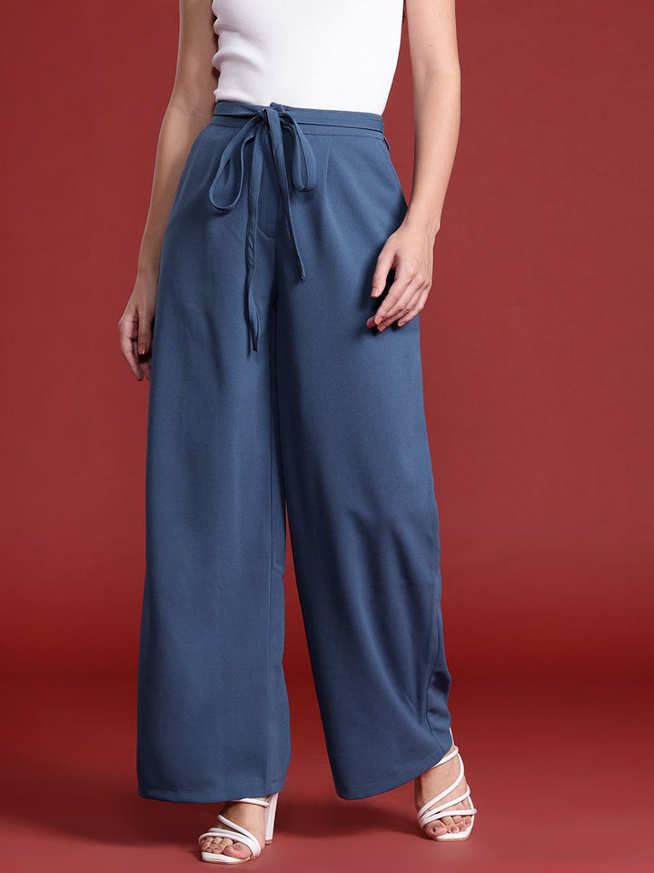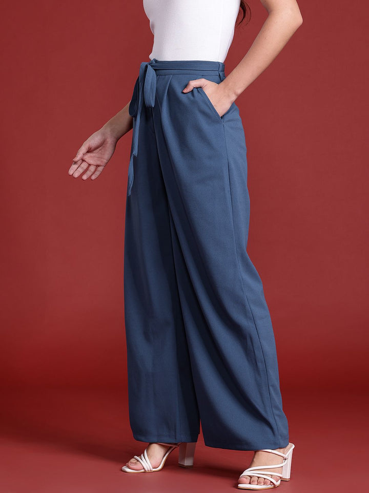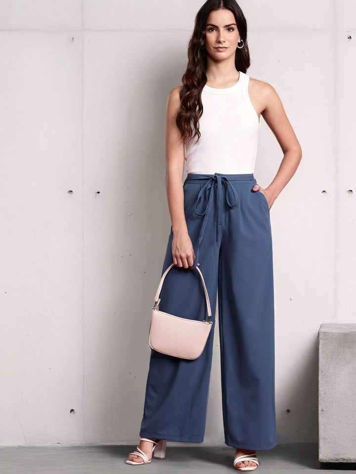 all about you Women Pleated Wide Leg Trousers with Fabric Belt
