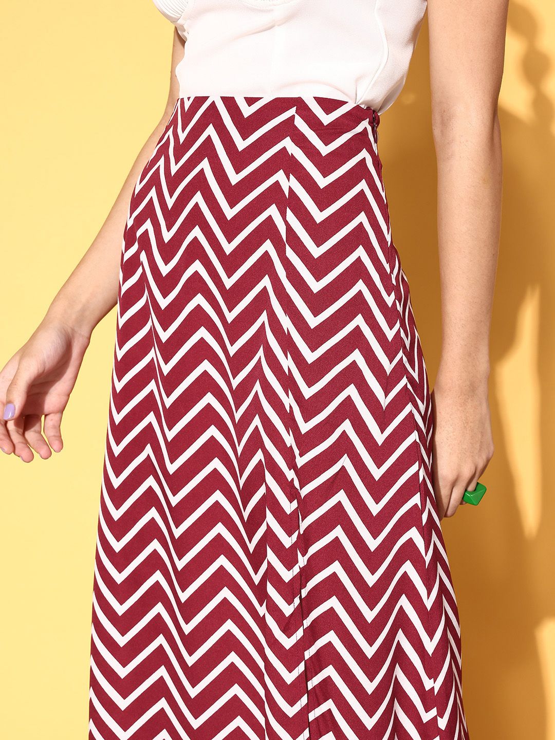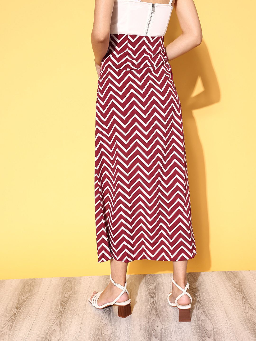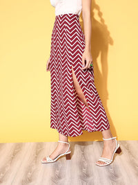 Berrylush Classy Maroon Geometric Roman Column Skirt
