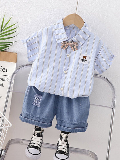 YK Kids Striped Pure Cotton Shirt With Shorts Clothing Set