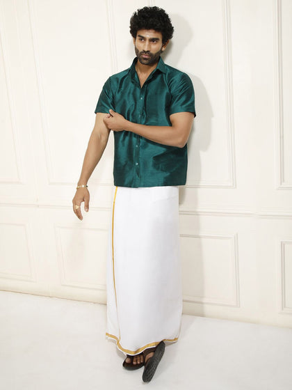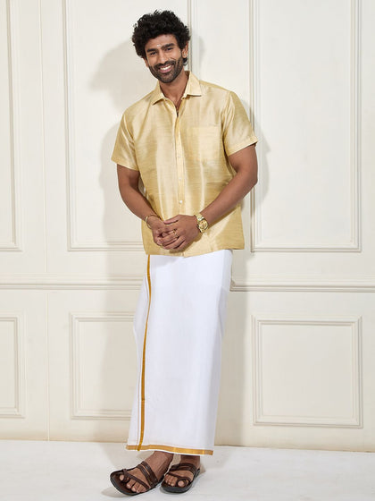 VASTRAMAY Shirt Collar Shirt With Veshti