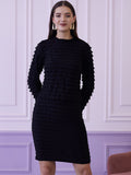 Athena Black Self Design Ruffle Top With Skirt