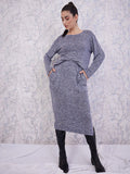 Blue self-design top, has round neck, long sleeves and slip-on closure