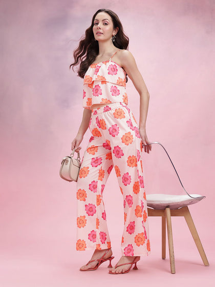 DressBerry Floral Printed Ruffle Detail Sleeveless Top With Trousers Co-Ords