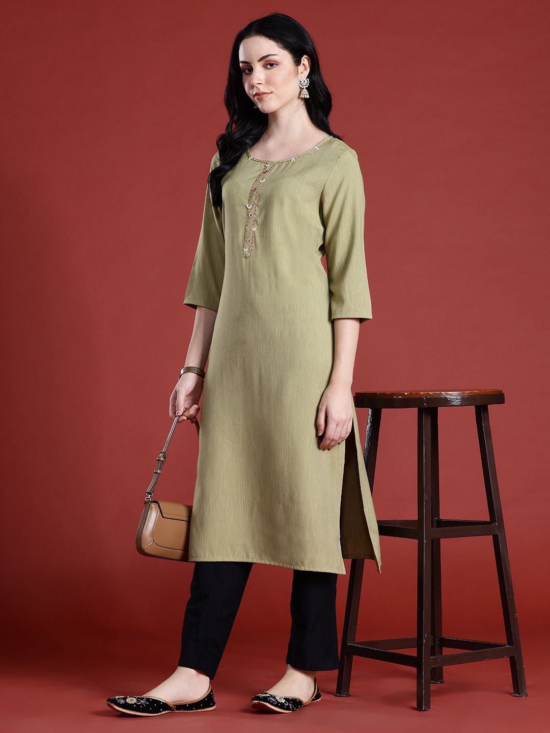 Anouk Thread Work Straight Kurta