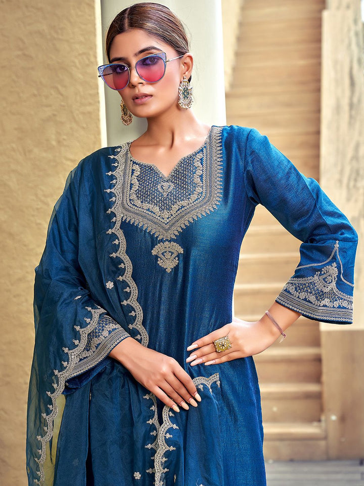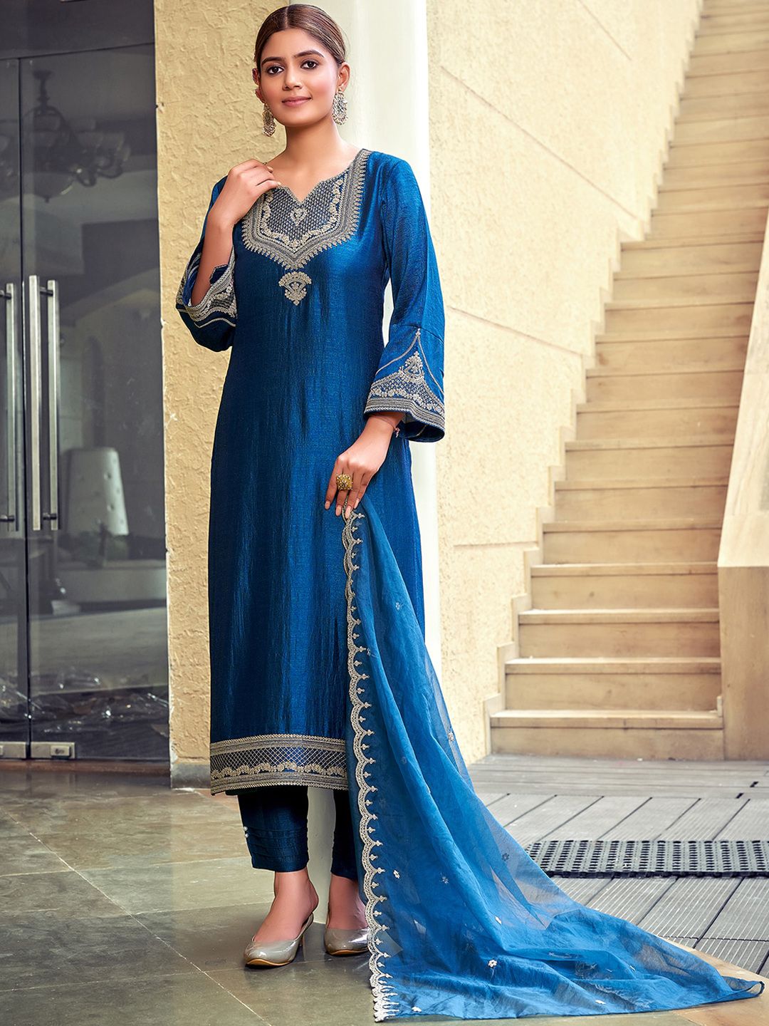 Indo Era Ethnic Motifs Yoke Design Thread Work Straight Kurta & Trouser With Dupatta