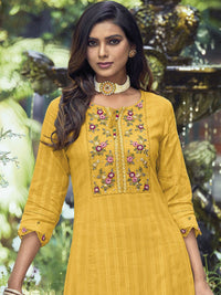 Indo Era Yellow Yoke Design Thread Work Pure Cotton Kurta With Trousers & Dupatta