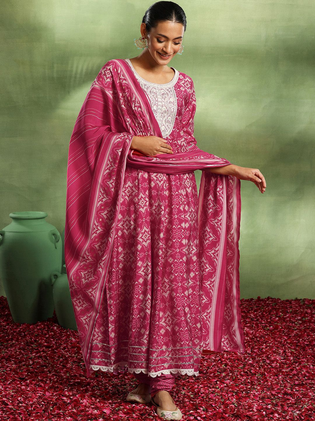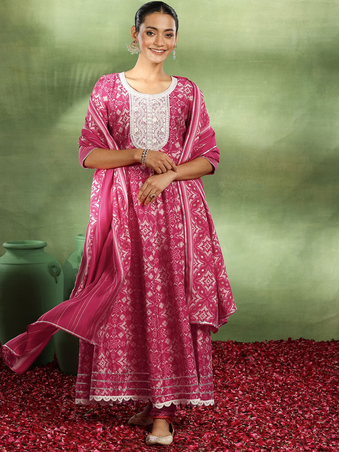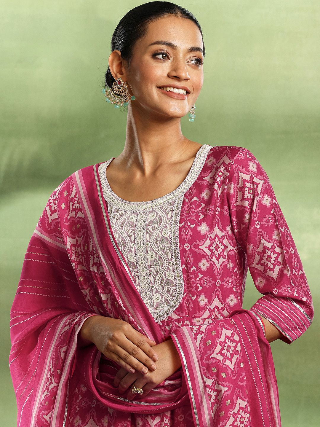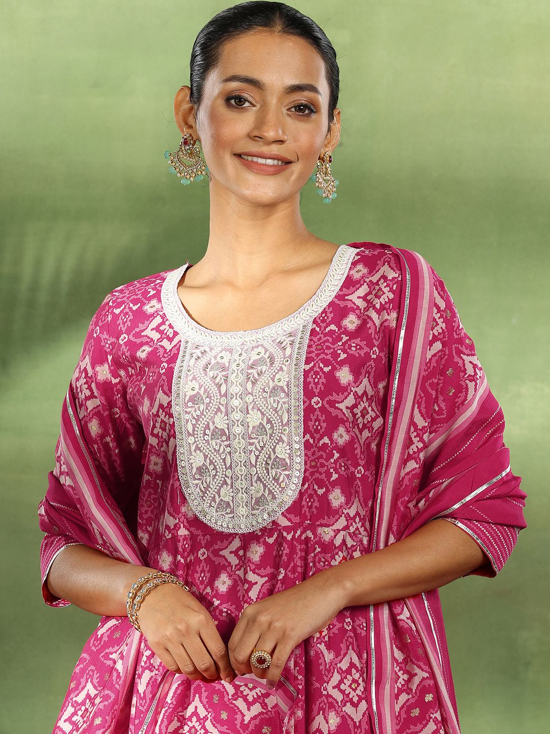 Libas Ethnic Motifs Printed Empire Thread Work Kurta with Churidar & Dupatta