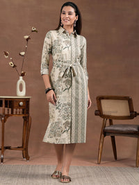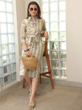 Libas Floral Printed Bell Straight Shirt Midi Dress With Waist Belt