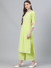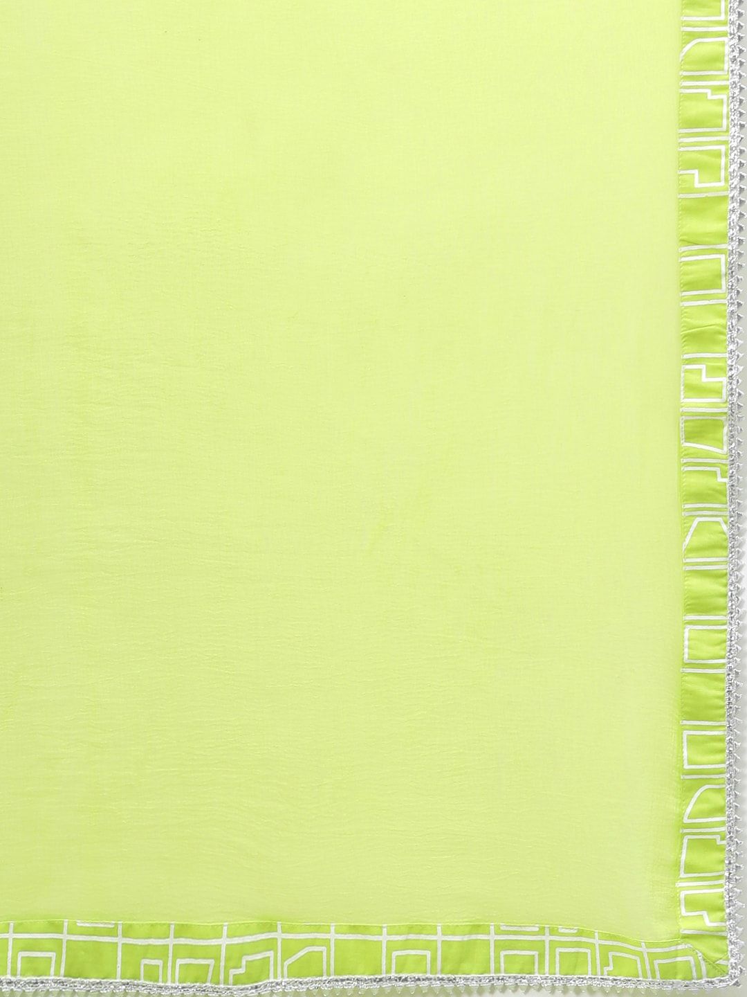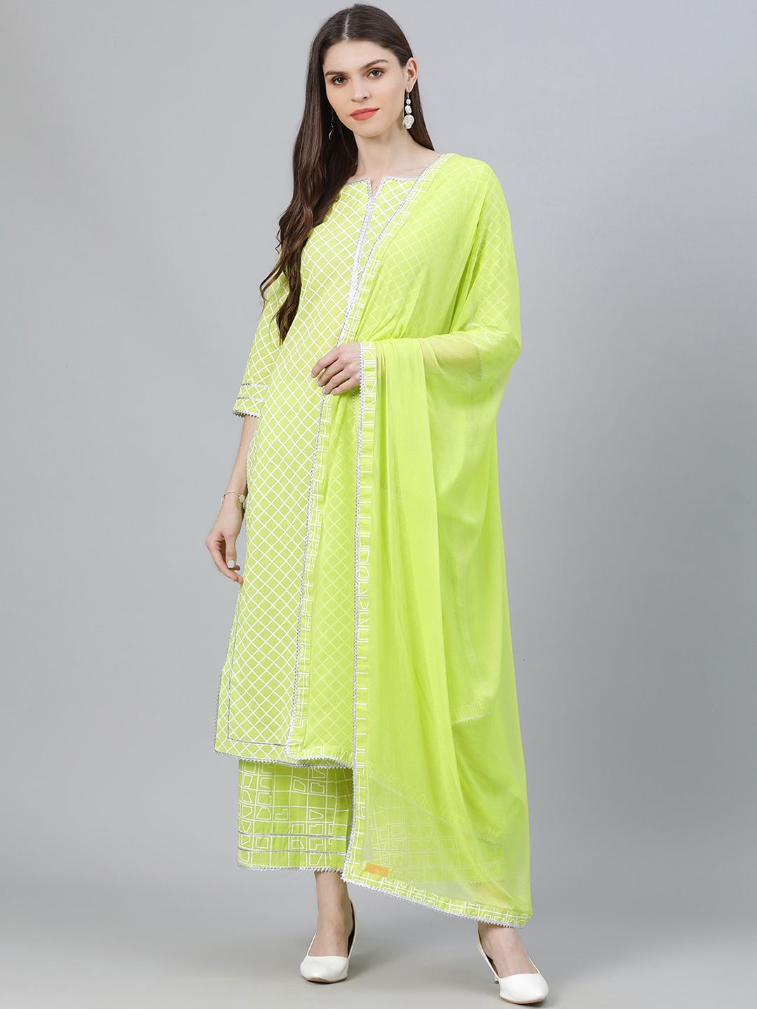 Libas Women Green Printed Pure Cotton Kurta with Palazzos & With Dupatta