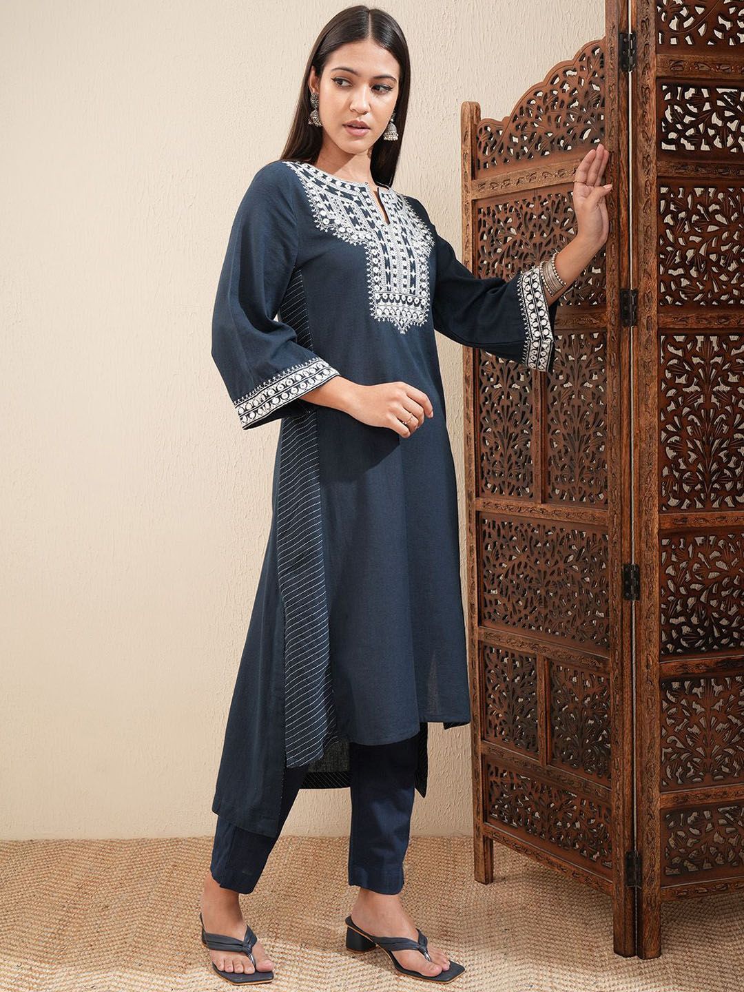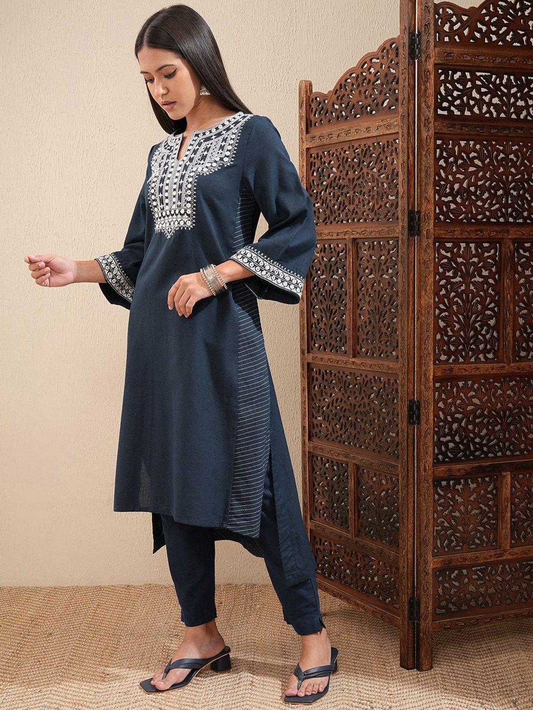 Vishudh Floral Embroidered Thread Work Straight Kurta