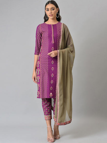Indo Era Women Ethnic Motifs Embroidered Regular Thread Work Liva Kurta with Trousers & With Dupatta