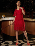 Athena Self Design Bell Sleeves Lace A-Line Dress