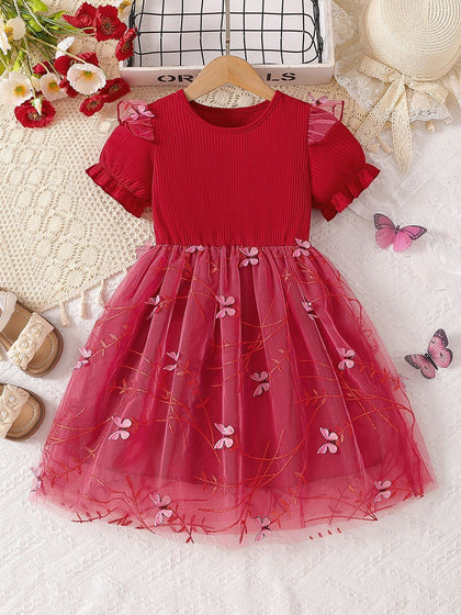 Embellished Print Fit & Flare Flutter Sleeve Dress