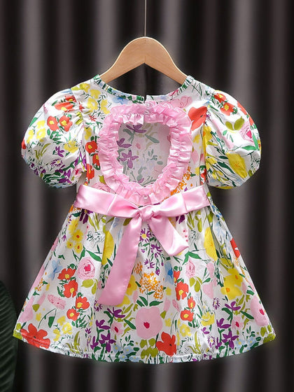 YK Girls Floral Printed Fit and Flare Cut-Outs Dress