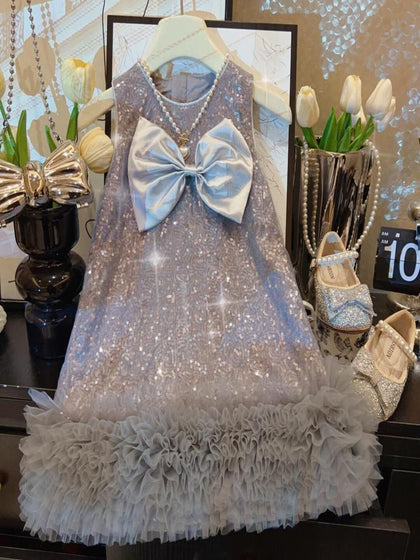 YK Girls Embellished Puff Sleeve Fit & Flare Dress