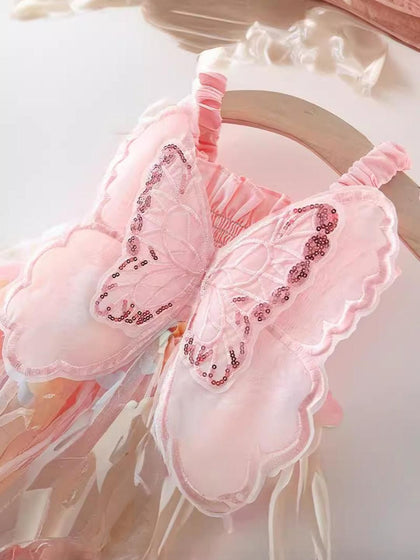 YK Girl Round Neck Puff Sleeves Tulle Dress
