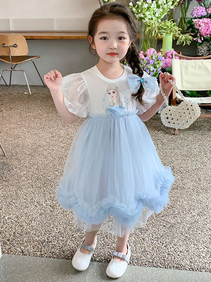 YK Girls Elsa Printed Embellished Detail Fit and Flare Dress