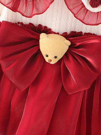 YK Girls Self Design Bow Detail Fit & Flare Dress