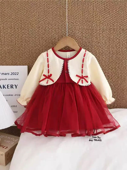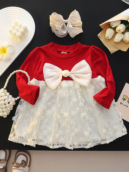 YK Girls Bow Detail Cotton Fit & Flare Dress