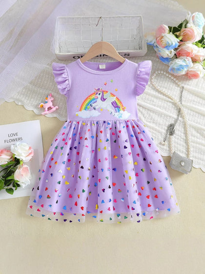 YK Girls Round Neck Flutter Sleeves Tulle Fit and Flare Dress