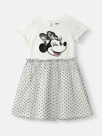 Nauti Nati Girls Partywear Mickey Sequinned Mesh Polka Dress