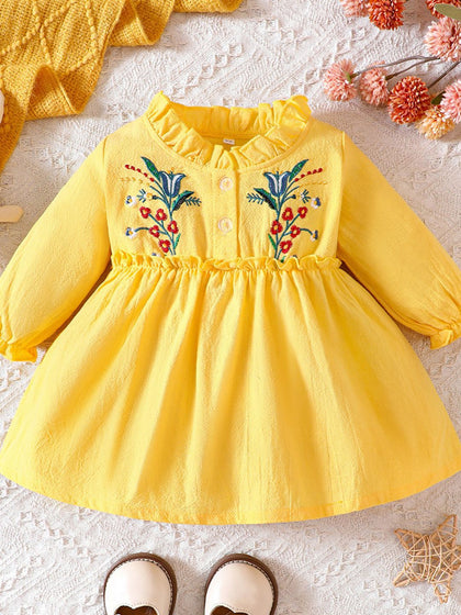 YK Girl Floral Embroidered Round Neck Peplum Dress