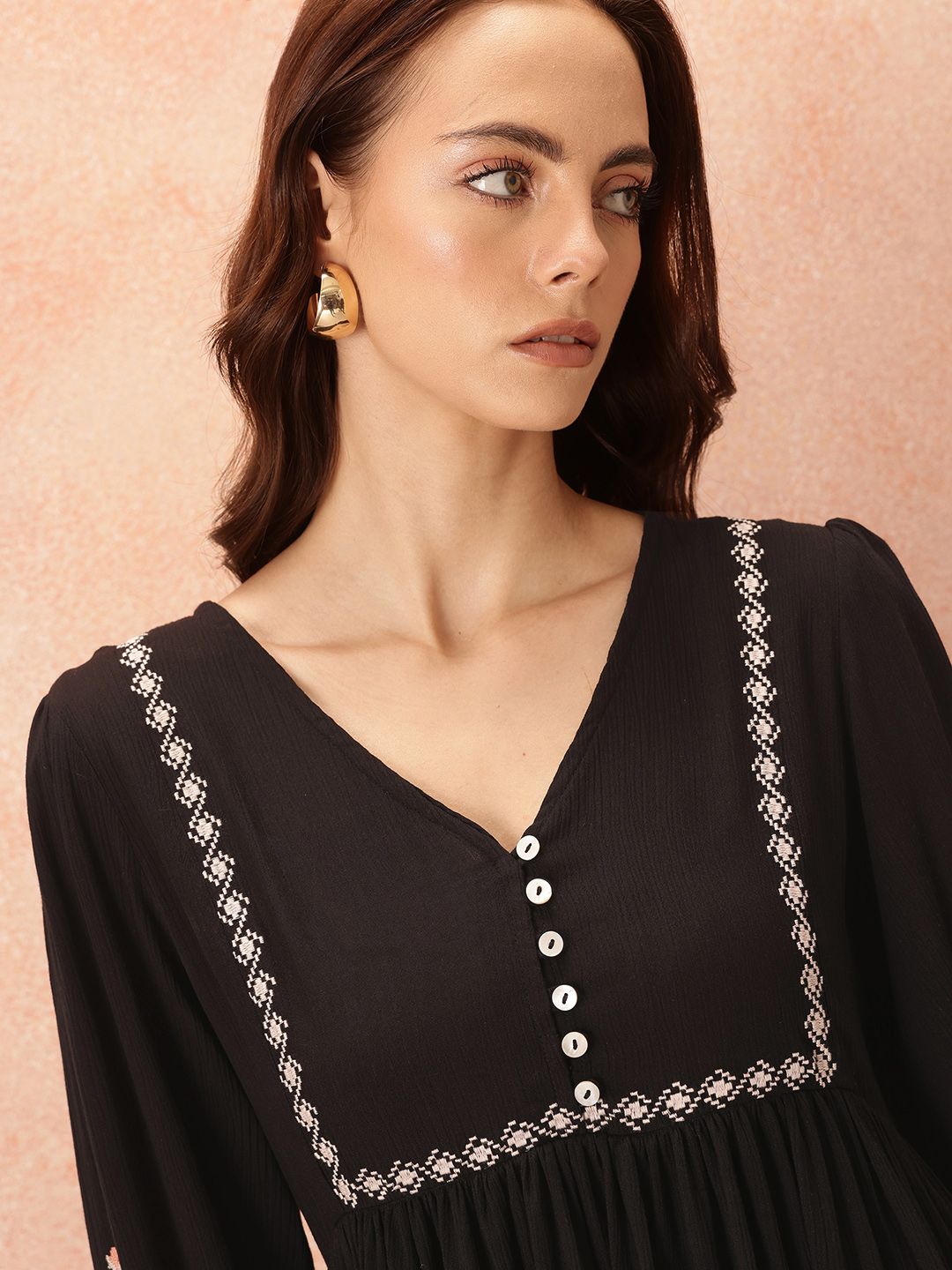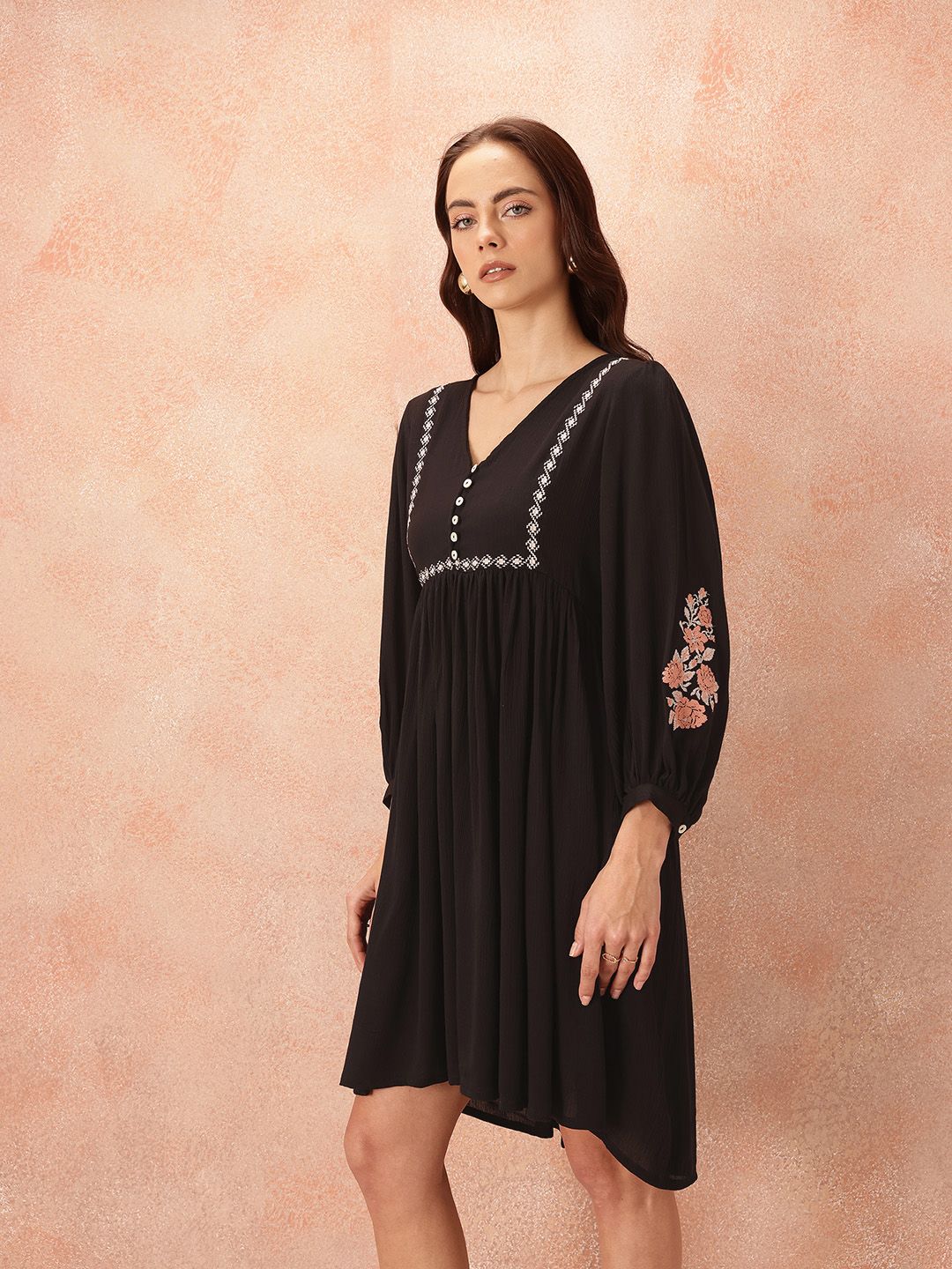 all about you Embroidered Detail A-Line Dress