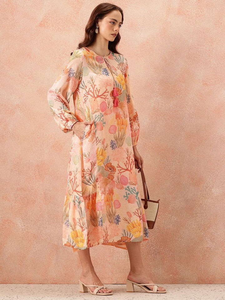 all about you Floral Printed Puff Sleeve A-Line Midi Dress