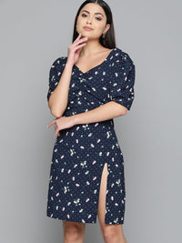 DENNISON Floral Printed Crepe A-Line Dress
