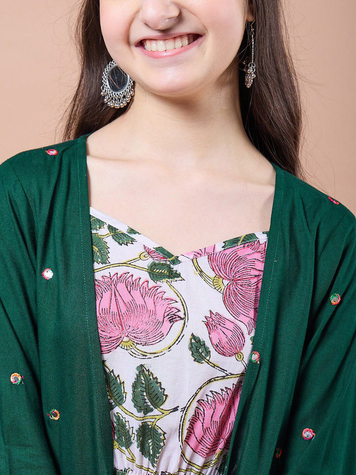 pspeaches Girls Floral Print Square Neck Empire Cotton Midi Dress